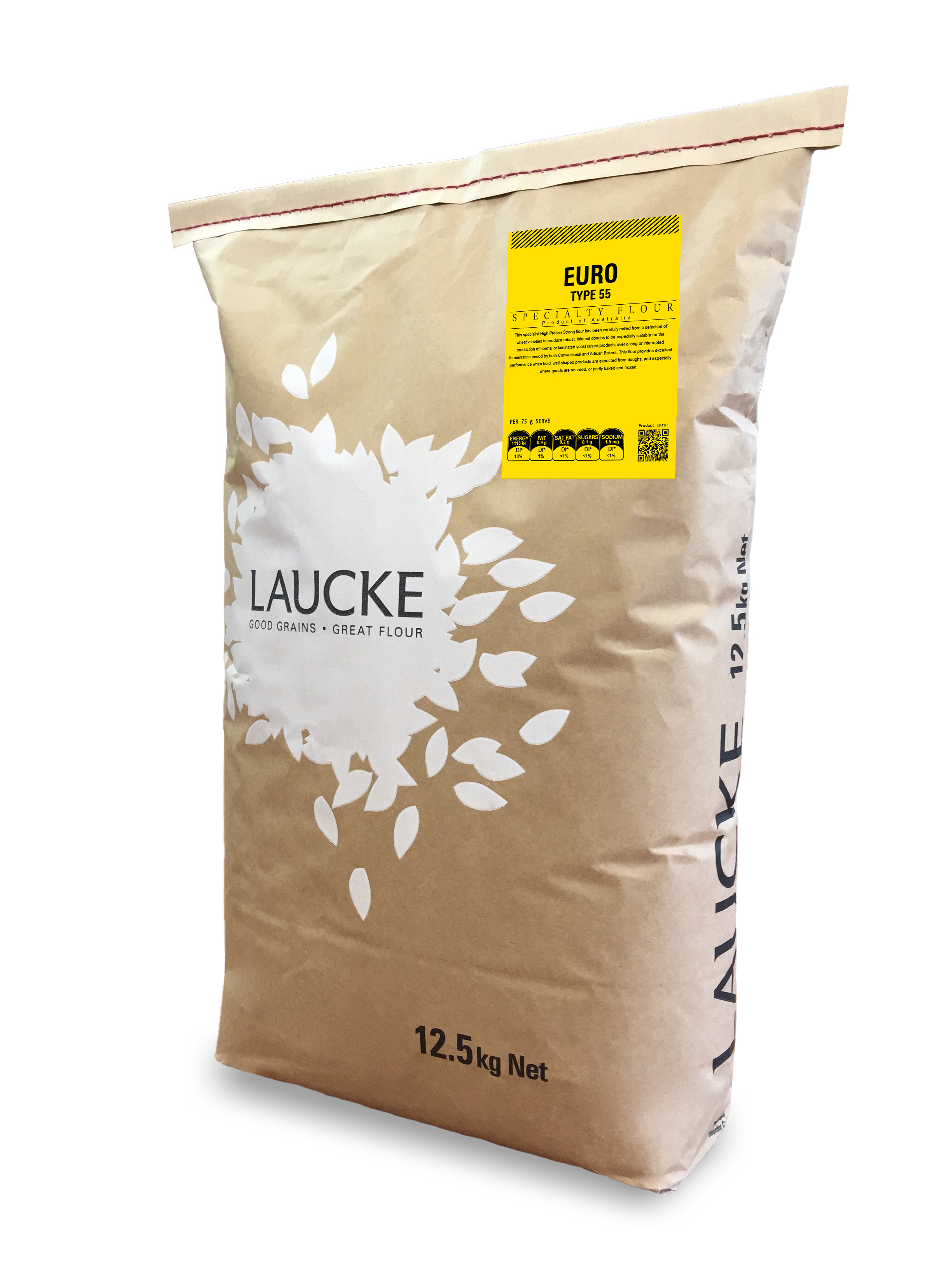 Laucke Euro Type 55 is a classic European-style white flour designed for everyday baking and artisan breadmaking. Presented in a 12.5kg bag, this medium-strength T55 flour delivers reliable performance for crusty baguettes, hearth breads, pizza bases and a range of viennoiserie and pastries. Its consistent milling makes it a favourite for bakeries, cafes and serious home bakers who need large-format supply.