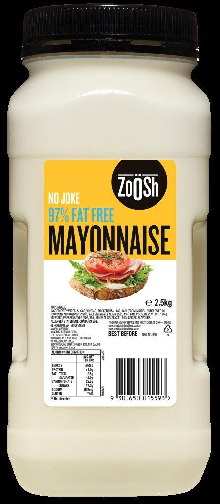A light, creamy mayonnaise in a large-format tub, perfect for cafés, catering and high-use kitchens. This 2.5kg Zoosh 97% Fat Free Mayonnaise delivers the classic mayo texture and tang with a significantly reduced fat profile, making it an easy swap for everyday sandwiches, wraps, salads, dips and dressings. Packaged in a durable 2.5kg container for convenient portioning, it’s aimed at foodservice and busy households that need a reliable bulk spread. Classified gluten-free, it’s suitable for customers avoiding gluten (always check the label for allergens). Store as directed on the label. Keywords: low-fat mayonnaise, fat free mayo, sandwich spread, salad dressing, catering tub, gluten-free.