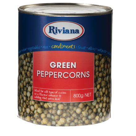 Whole green peppercorns packed in a convenient 800g can, perfect for keeping your pantry stocked with a versatile spice. These mild, aromatic peppercorns are ideal for sauces, dressings, marinades, casseroles and pickling, adding a bright, fresh pepper flavour without the heat of black pepper. Supplied in a shelf-stable tin, they’re easy to measure and use straight from the can for catering or home cooking. Suitable for vegan diets, this product works well across a wide range of cuisines and recipes where a subtle pepper note is wanted. Keep refrigerated after opening and use within a few weeks for best quality. Category: Herbs, Seeds & Spices — pantry essential for everyday cooking.